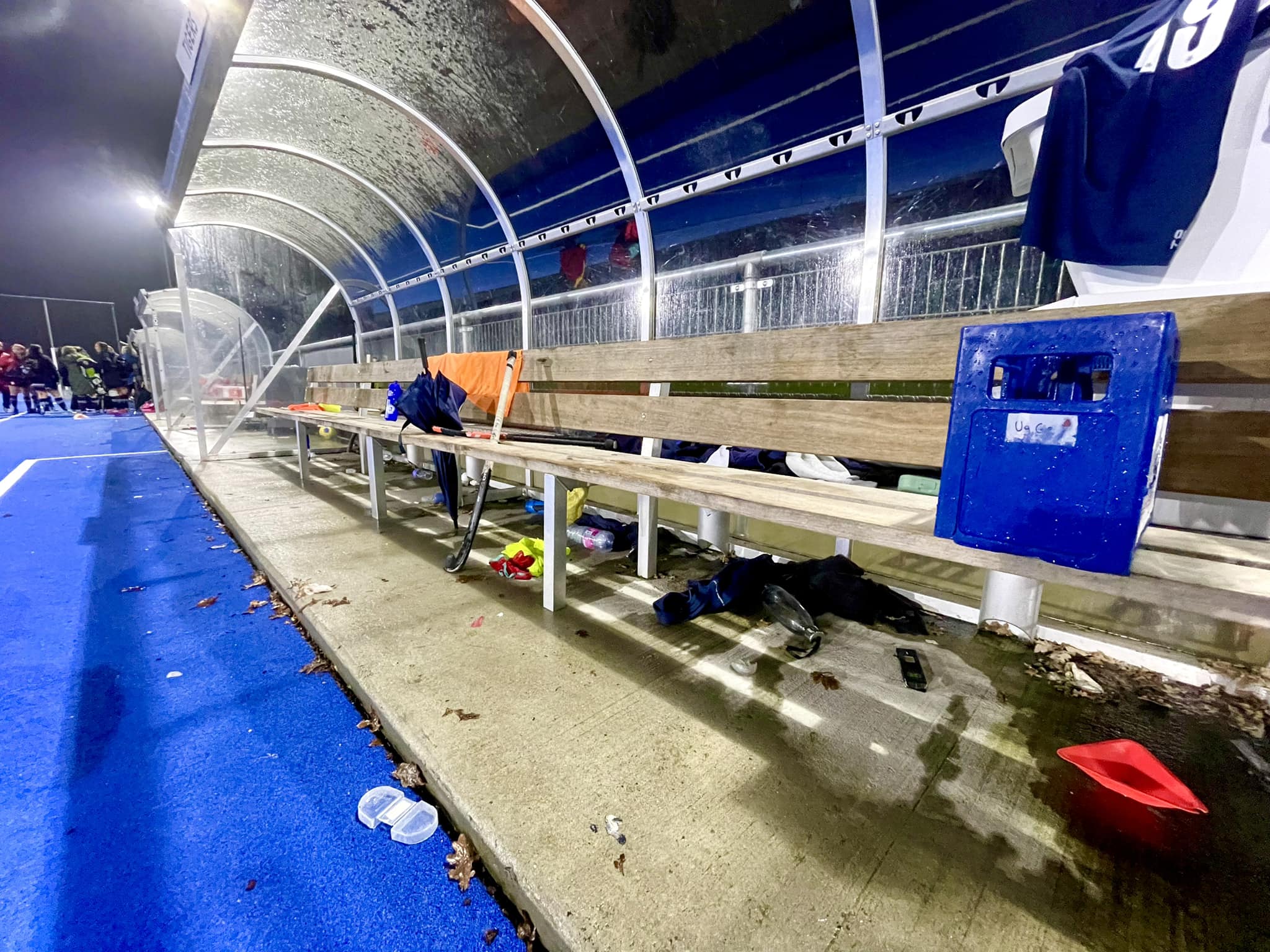 Niet te geloven hoeveel materiaal, gaande van drinkbussen, sweaters tot jassen, er dagelijks op het veld en in de dug-outs blijft liggen…