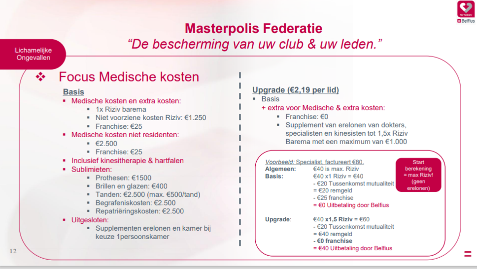 BELFIUS, als hoofdpartner van de federatie, staat in voor de verzekering van alle hockeyclubs.